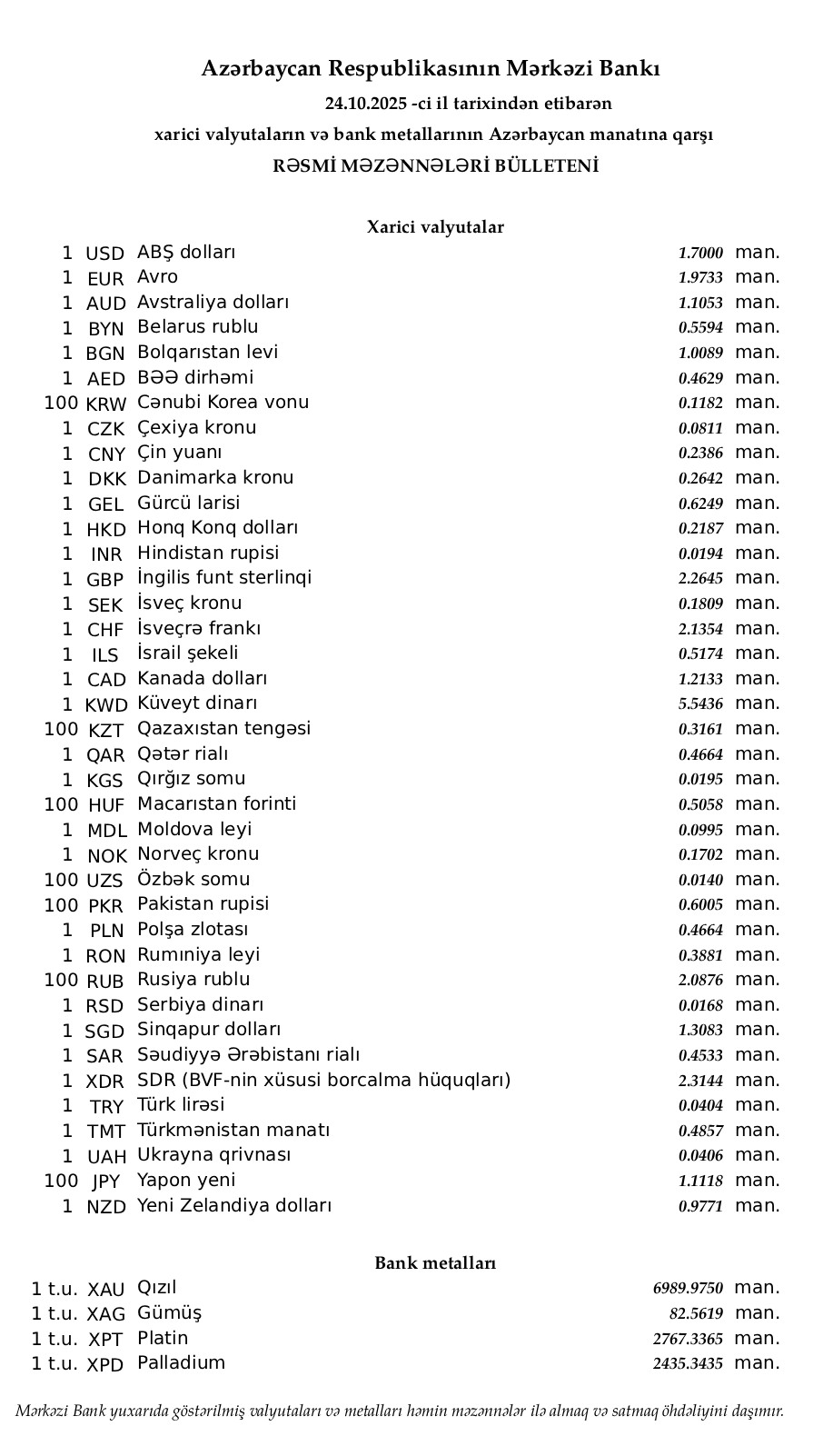 Dolların bazar erətsi üçün rəsmi məzənnəsi müəyyən olunub
