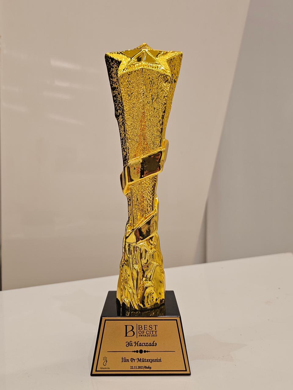 22 Noyabr 2025 – ci il tarixdə, Bakıda, öz sahəsində xüsusi uğurları, fərqli yanaşmaları və yaratdıqları trendlərlə seçilən şəxslərə və şirkətlərə “BEST OF CITY AWARDS 2025” mükafatını təqdimatı mərasimi keçirilib.