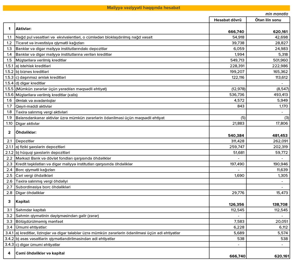 Aktivlərin artımında əsas pay kredit portfelinin genişlənməsinə məxsusdur.