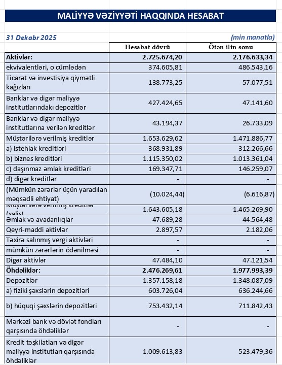 2025-ci il "Bank Respublika" üçün necə keçib? - MALİYYƏ VƏZİYYƏTİNİN TƏHLİLİ
