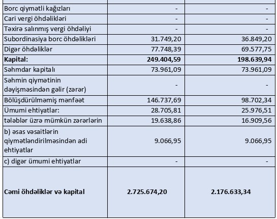 Kredit təşkilatları və digər maliyyə institutları qarşısında öhdəliklərin 92,9% artması bankın xarici və ya digər maliyyə mənbələrindən daha aktiv şəkildə istifadə etdiyini və əlavə maliyyə resurslarına daha çox güvəndiyini göstərir. Bu, kredit portfeli və aktiv artımını sürətləndirməyə imkan verən əsas amillərdən biri kimi qiymətləndirilir. Bankın kapitalının 20% artması maliyyə dayanıqlığını gücləndirən əsas göstəricidir. Bu artım bankın risklərə qarşı müqavimətini və gələcək genişlənmə imkanlarını möhkəmləndirir.