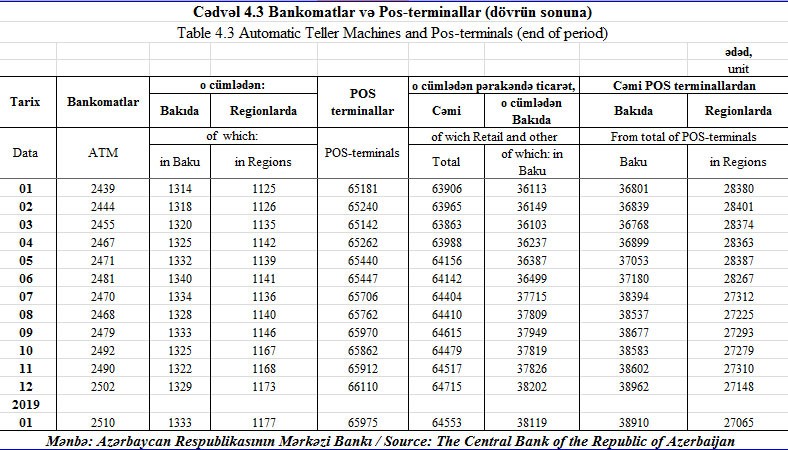 2018-ci ilin Dekabr ayı ilə müqayisədə Yanvarda Pos-terminalların sayı azalıb.