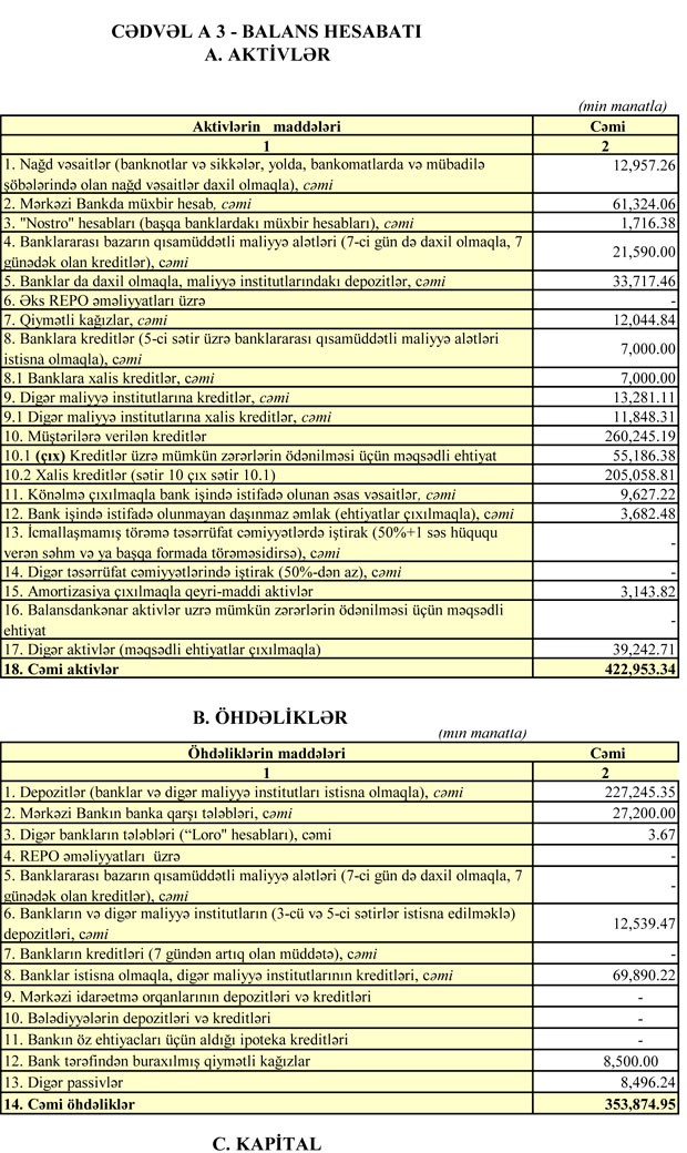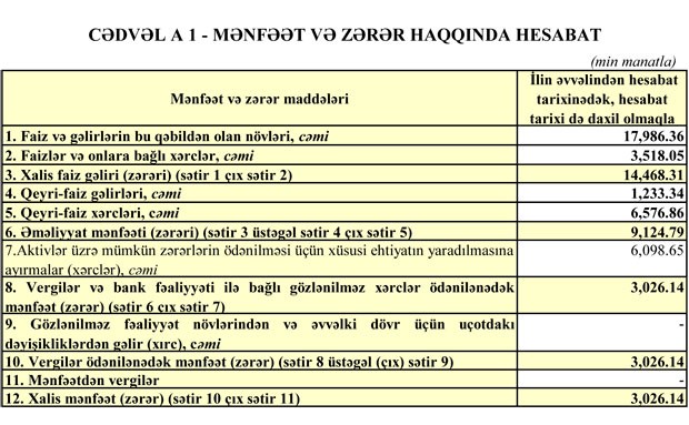 Bankı faiz gəlirləri 16 milyon 537 min manatdan 17 milyon 986 min manata qalxıb.