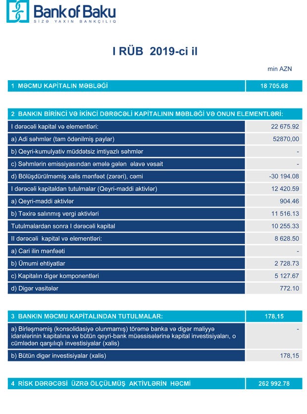 “Bank of Baku” ASC 2019-cu ilin 1-ci rübü üzrə maliyyə göstəricilərini açıqlayıb.