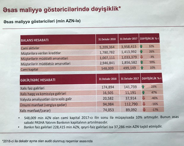 2007-ci ildə fəaliyyətə başlamış “PAŞA Bank”ın aktivləri 10 il ərzində 3 milyard 552 milyon manata çatmışdı (2017-ci ilin sonunda). 2018-ci ildə isə Bankın aktivləri rekord məbləğdə - 1 milyard 111 milyon manat artaraq 31 Dekabr 2018-ci il tarixində 4 milyard 695 milyon manat təşkil edib.