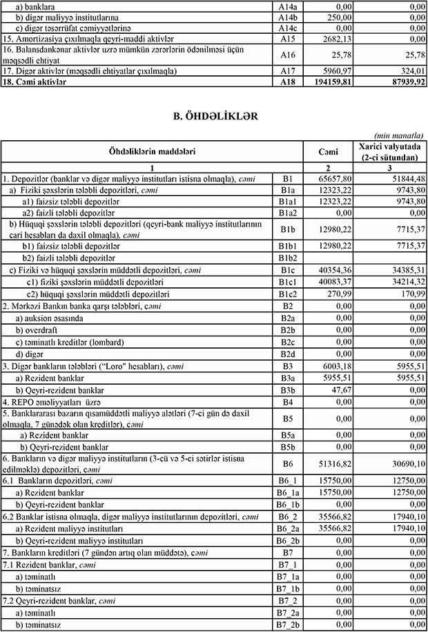 Azər Türk Bankın maliyyə vəziyyəti məlum olub