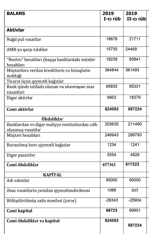 Azər Türk Bankın maliyyə vəziyyəti məlum olub