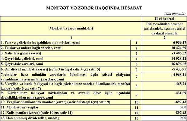 “AgBank” yarımillik maliyyə göstəricilərini açıqlayıb