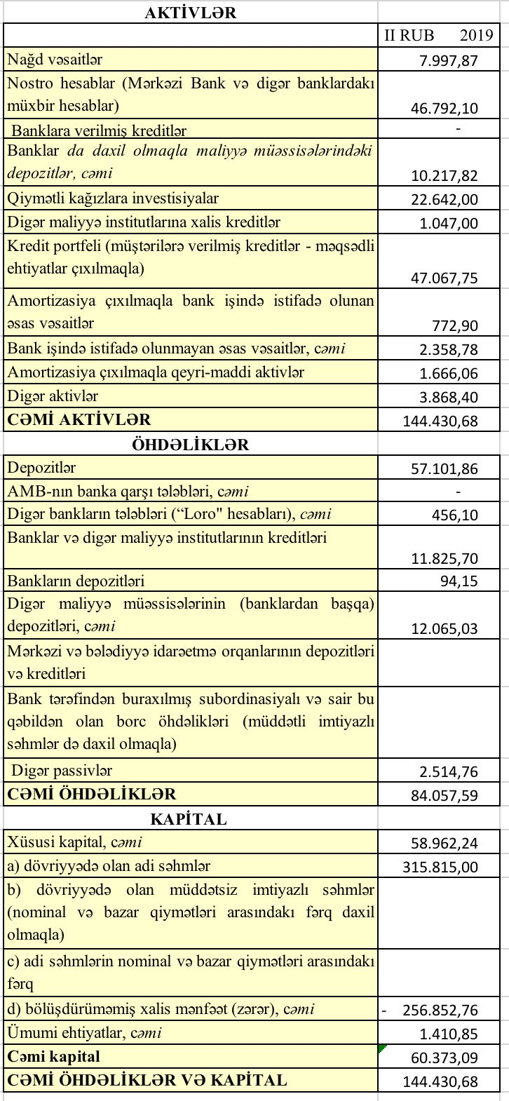 Azər Türk Bankın maliyyə vəziyyəti məlum olub