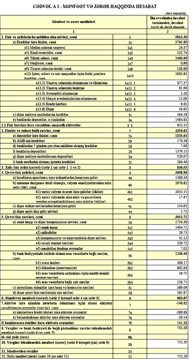 Azər Türk Bankın maliyyə vəziyyəti məlum olub