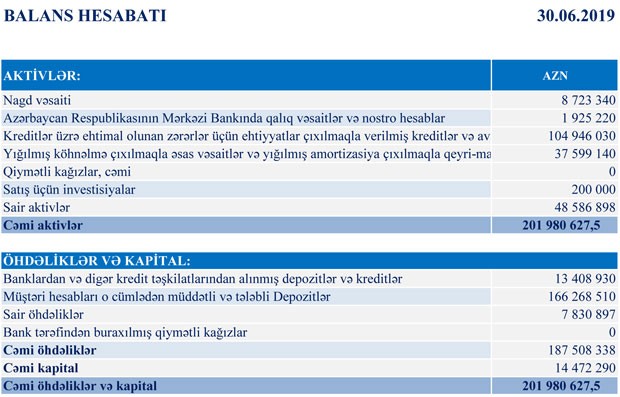 Bankın aktivləridə 2018-ci ilin II rübü ilə müqayisədə 5 mln. AZN artmışdır.
