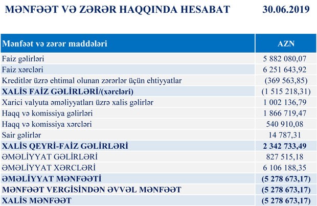 Azər Türk Bankın maliyyə vəziyyəti məlum olub