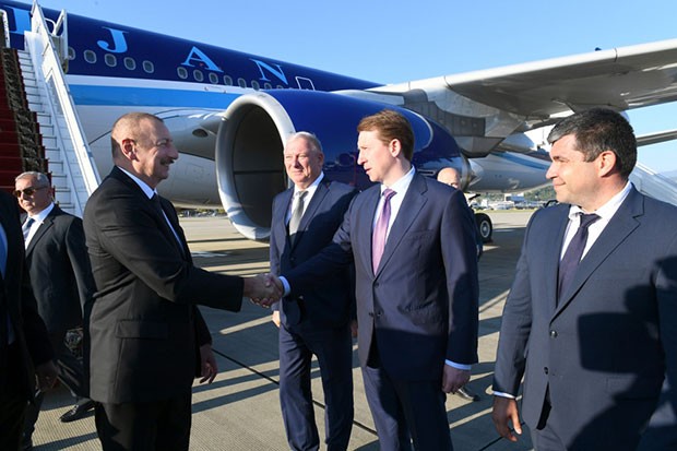 "Marja" xəbər verir ki, hər iki ölkənin dövlət bayraqlarının dalğalandığı Soçi Beynəlxalq Aeroportunda dövlət başçısını Krasnodar vilayətinin qubernator müavini Anatoli Voronovski, Şoçi şəhərinin meri Aleksey Kopayqorodski və digər rəsmi şəxslər qarşılayıblar.