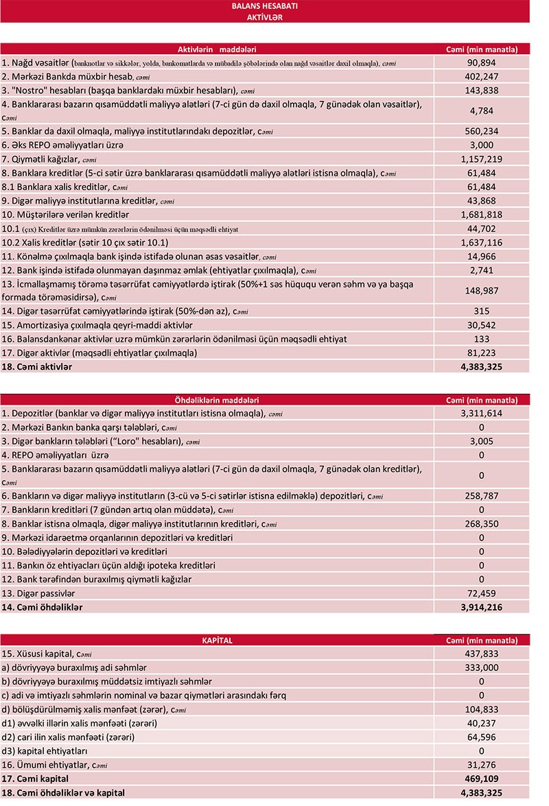 Azər Türk Bankın maliyyə vəziyyəti məlum olub