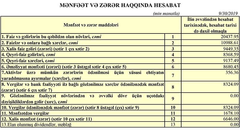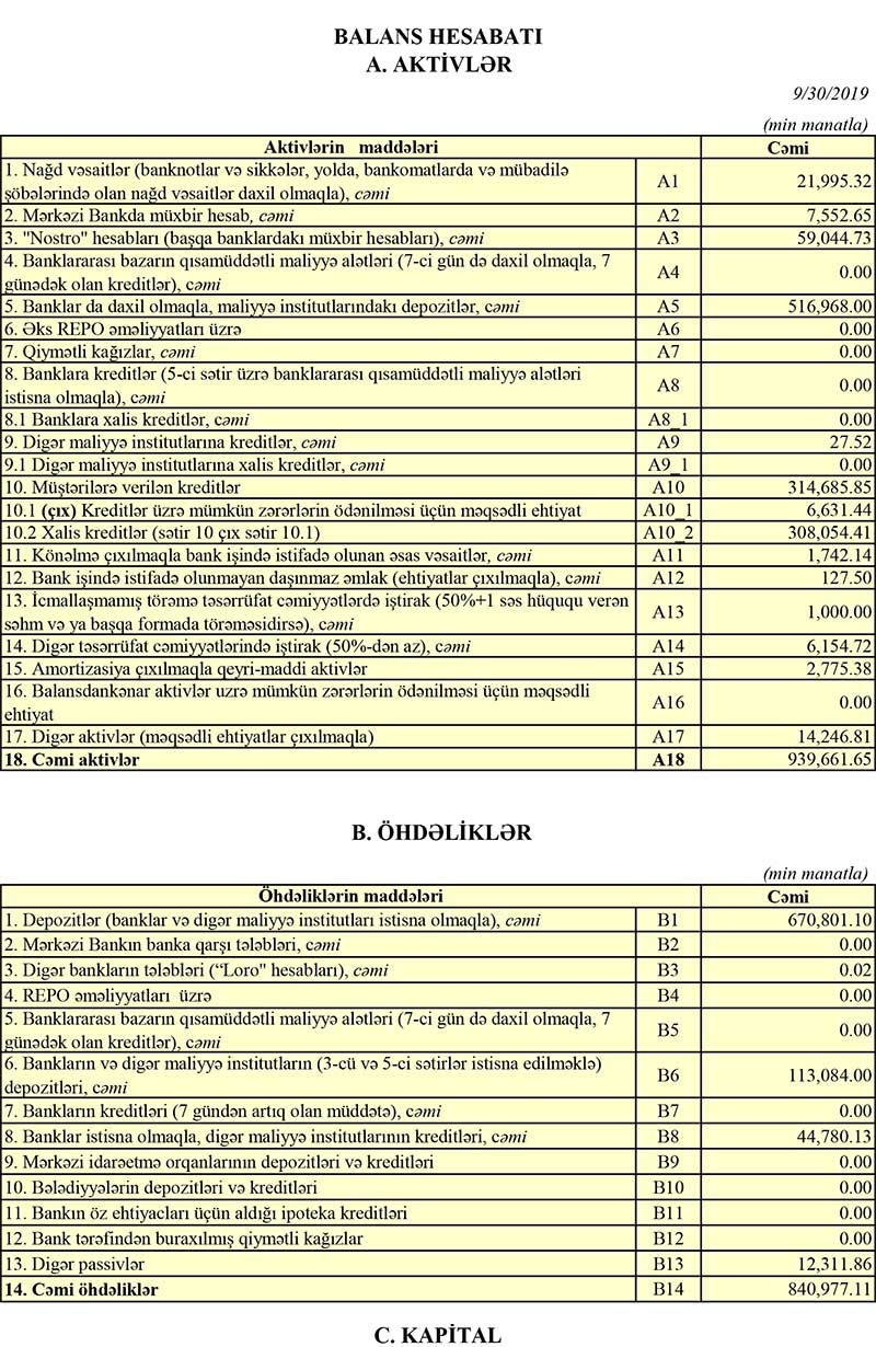 Azər Türk Bankın maliyyə vəziyyəti məlum olub