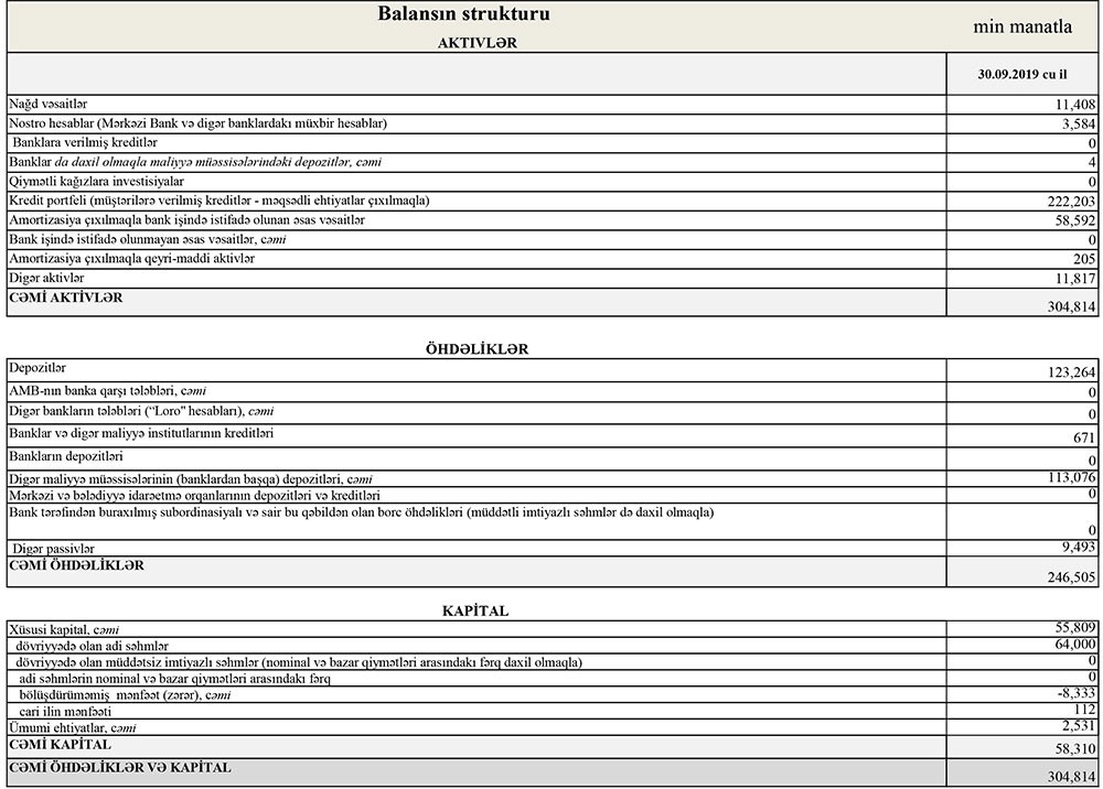 Azər Türk Bankın maliyyə vəziyyəti məlum olub