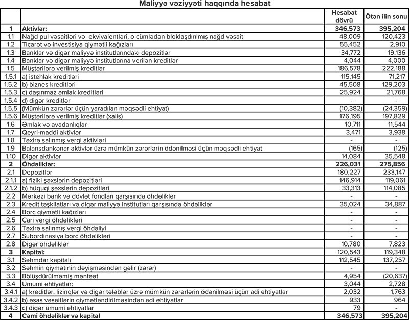 Azər Türk Bankın maliyyə vəziyyəti məlum olub