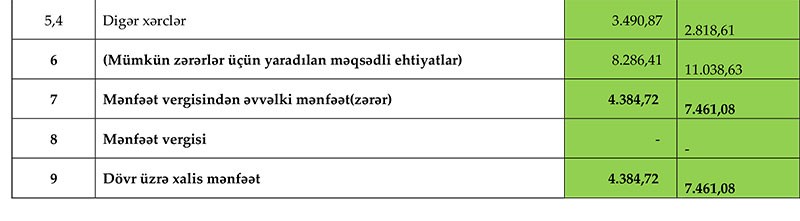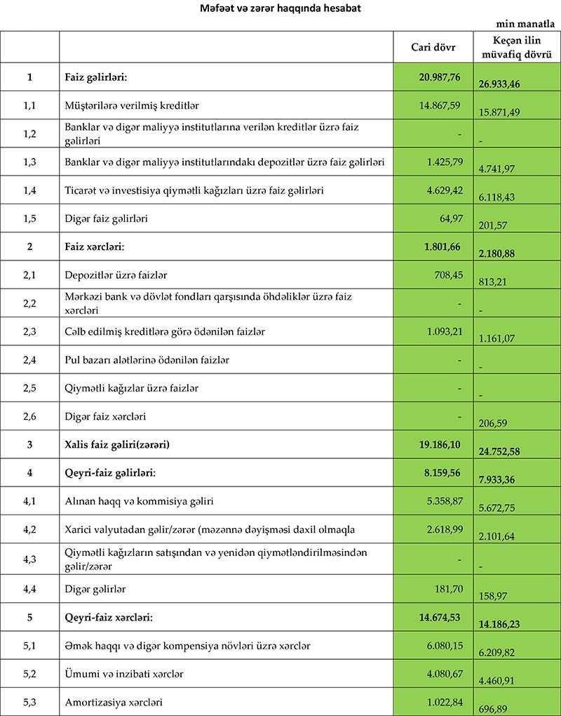 Müqayisə üçün qeyd edək ki, 2018-ci ilin yanvar-sentyabr dövründə “AFB Bank”ın cəmi gəlirləri 34 milyon 866 min manat, cəmi xərcləri 16 milyon 366 min manat və nəticədə əməliyyat mənfəəti 18 milyon 500 min manat təşkil etmişdi. Bank əməliyyat mənfətinin 11 milyon 38 min manatını ehtiyata ayırdığından həmin dövrü 7 milyon 461 min manat xalis mənfəət ilə bağlamışdı.