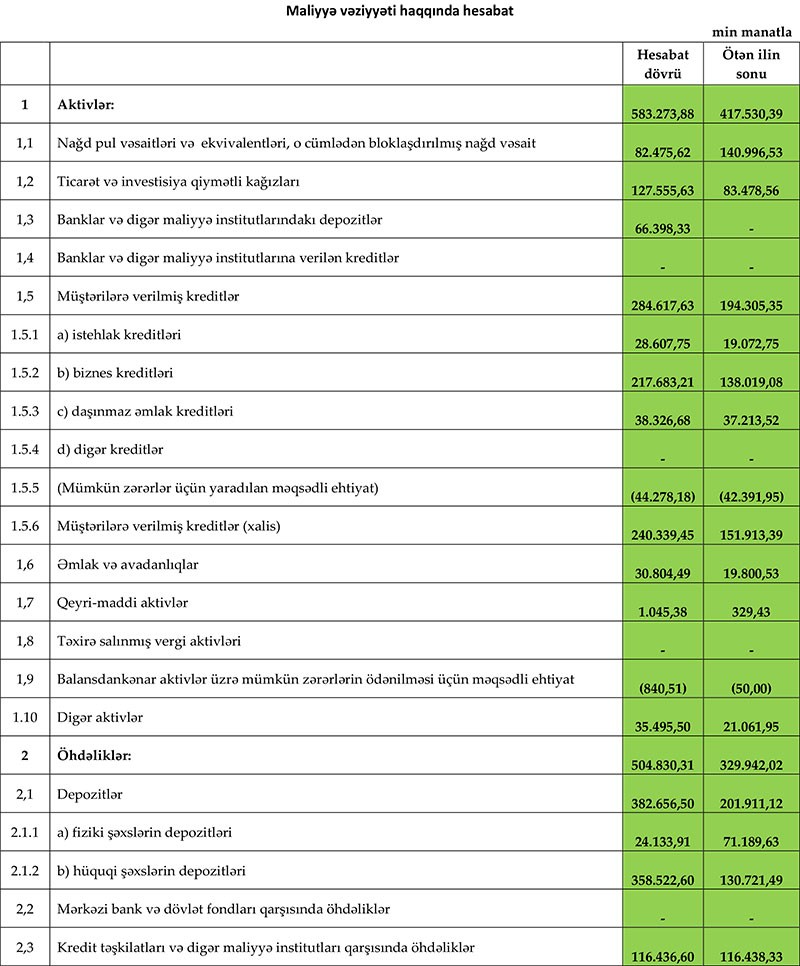 Azər Türk Bankın maliyyə vəziyyəti məlum olub