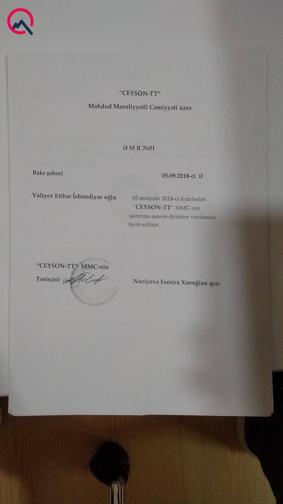 Şikayətçinin bizə təqdim etdiyi sənədlərdən görünür ki, onun adına açılan “Buttolo”, “Ceyson-TT”, “Dikson-N.N”, “Brayner – S.S”, “Lesnek-2018” şirkətinin hər birinə Vəliyev Etibar İsbəndiyar oğlu direktor təyin olunub.