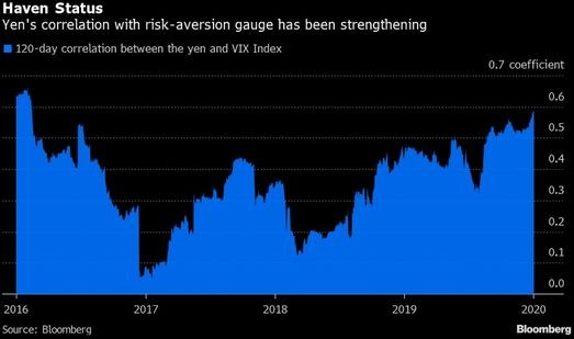 Yapon yeninin "Chicago Board Options Exchange"in (CBOE) Volatillik İndeksi (VIX) ilə korrelyasiyası, ABŞ ilə İran arasında artan gərginliyin "etibarlı liman" tələbini artırması ilə təxminən üç ilin ən yüksək səviyyəsinə qalxıb.