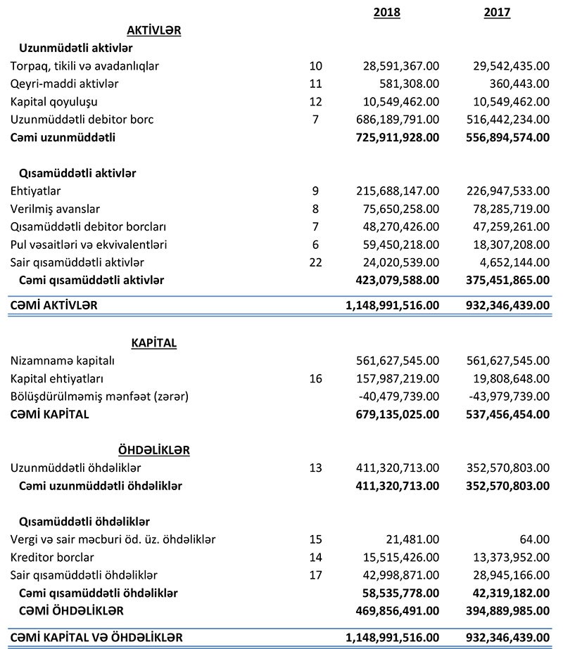 Xatırladaq ki, "Aqrolizinq" ASC 201-ci ili 639 min manat, 2016-cı ili 11 milyon 75 min manat, 2017-ci ili 21 milyon 722 min manat xalis zərər ilə başa vurmuşdu.