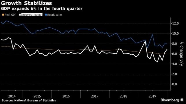 Çin iqtisadiyyatı üçüncü rübdə az qala 30 ilin ən yavaş artımını qeyd etməsinin ardından dördüncü rübdə illik 6% artıb.