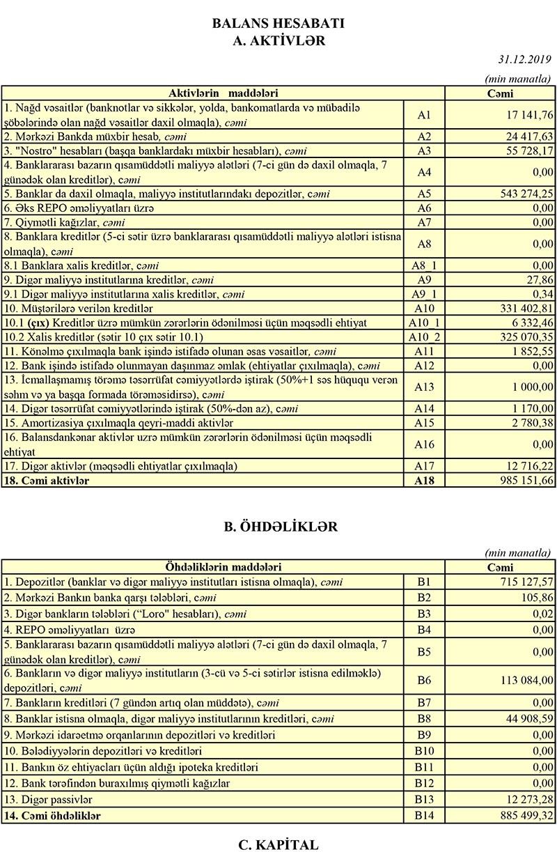 Azər Türk Bankın maliyyə vəziyyəti məlum olub