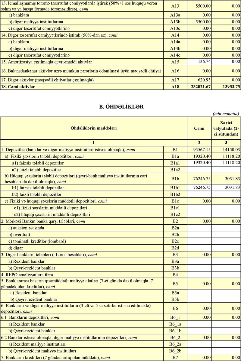 Azər Türk Bankın maliyyə vəziyyəti məlum olub