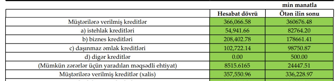 İstehlak kreditlərini azaldıb, biznes kreditlərini artırıb - BANK PORTFELİNİ AÇIQLADI
