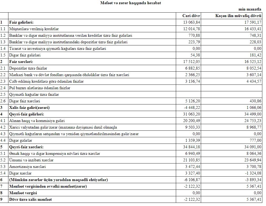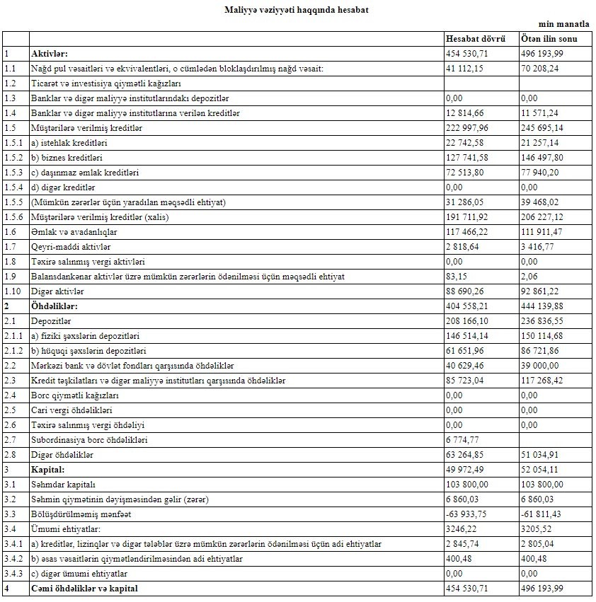 Azər Türk Bankın maliyyə vəziyyəti məlum olub