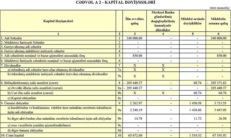 Azər Türk Bankın maliyyə vəziyyəti məlum olub