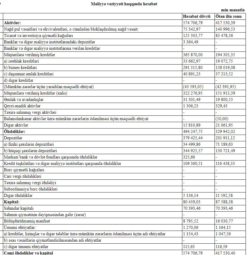 Azər Türk Bankın maliyyə vəziyyəti məlum olub