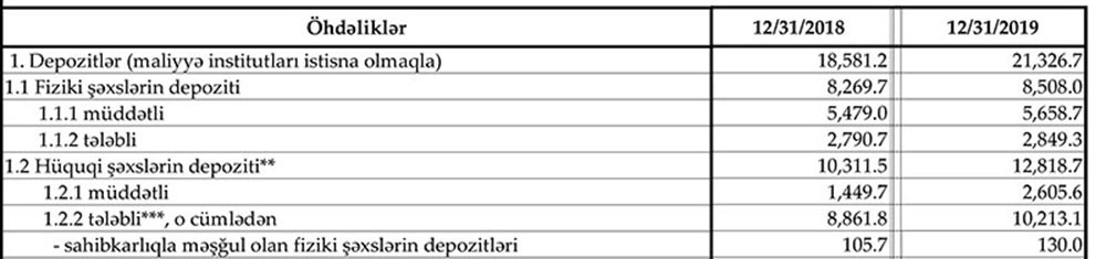 Ötən il sahibkarlıqla məşğul olan fiziki şəxslərin depozitləri isə 24.3 milyon manat artaraq 130 milyon manata yüksəlib.