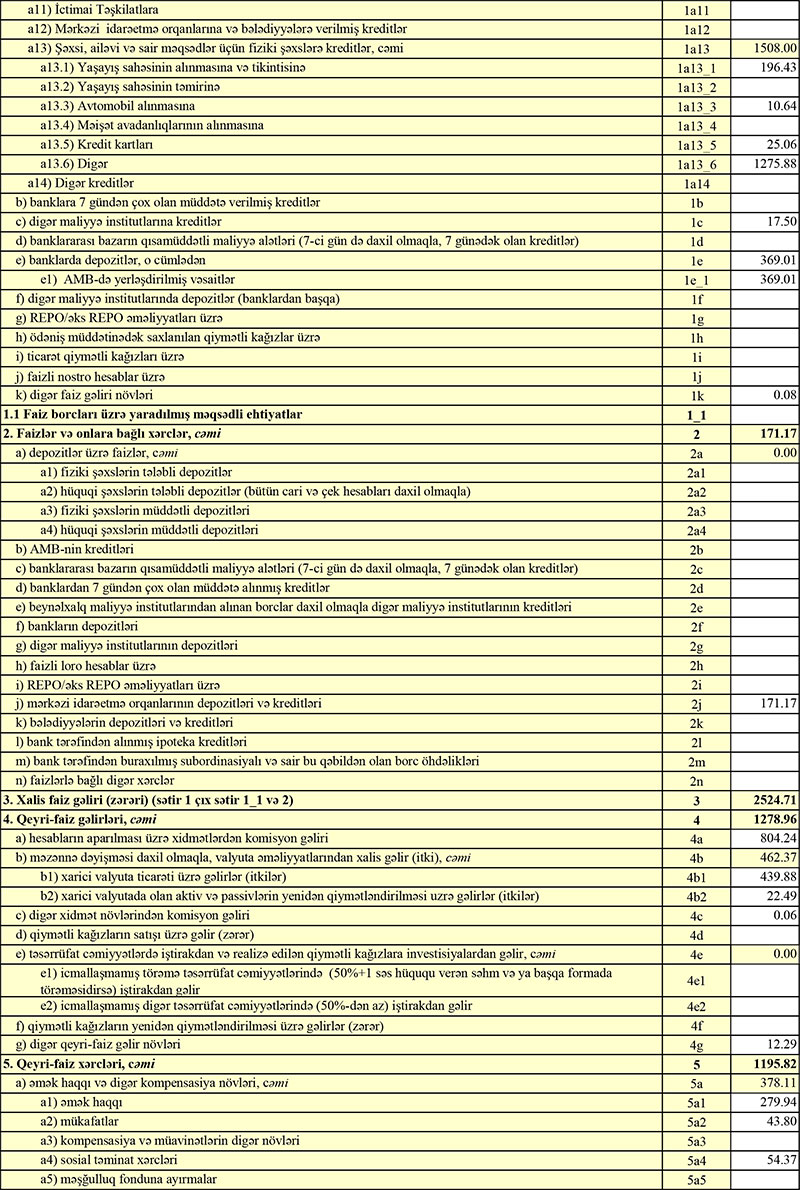 Ötən ilin ilk rübündə 1 milyon 511 min manat təşkil etmiş faiz gəlirləri, 2020-ci ilin ilk rübündə 2 milyon 695 min manat olub. Qeyri-faiz gəlirləri isə 708 min manatdan 1 milyon 279 min manata yüksəlib.