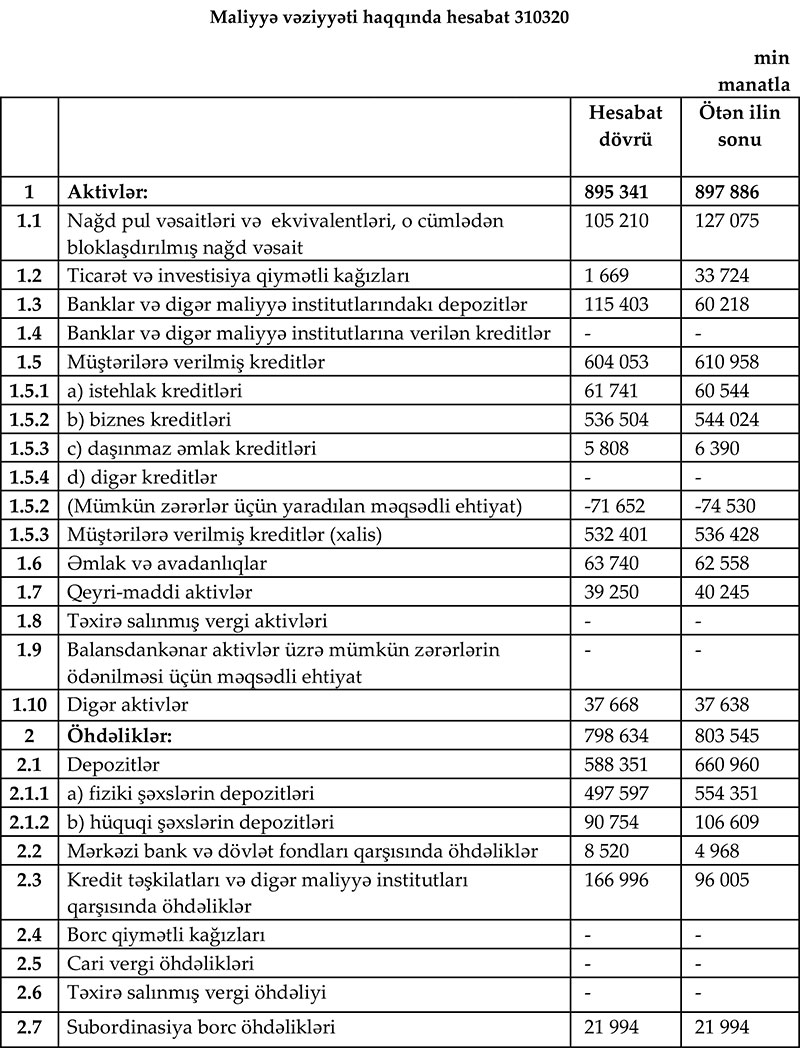 Azər Türk Bankın maliyyə vəziyyəti məlum olub