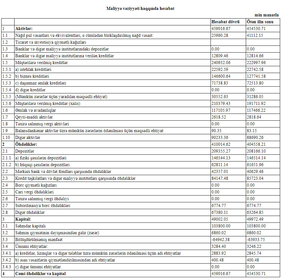 Azər Türk Bankın maliyyə vəziyyəti məlum olub