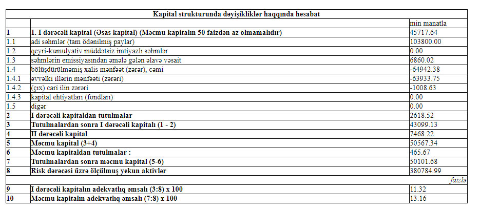 31 Mart 2020-ci il tarixində “AGBank” 50 milyon 101 min manat məcmu kapitala malik olub.