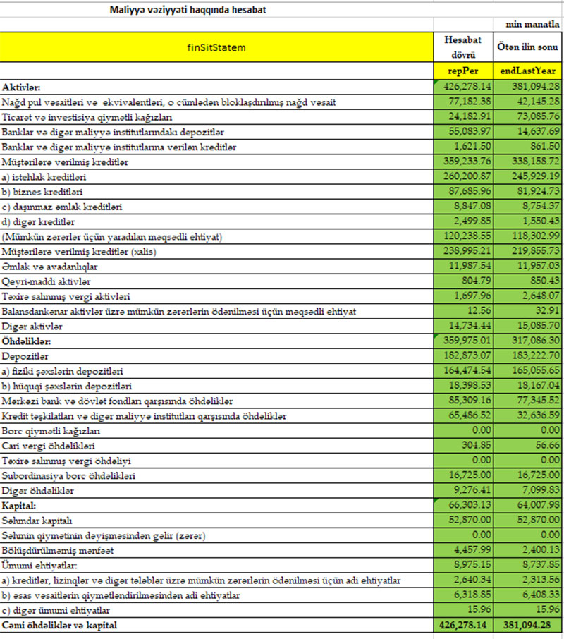 Azər Türk Bankın maliyyə vəziyyəti məlum olub