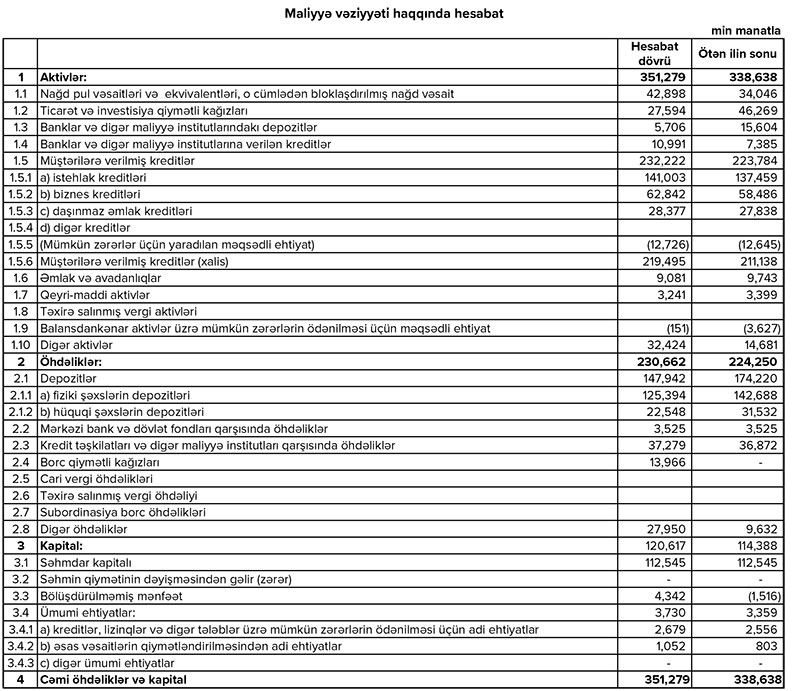 Azər Türk Bankın maliyyə vəziyyəti məlum olub