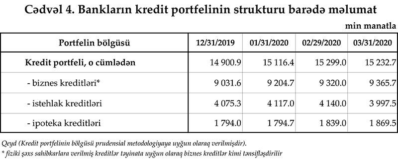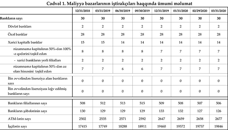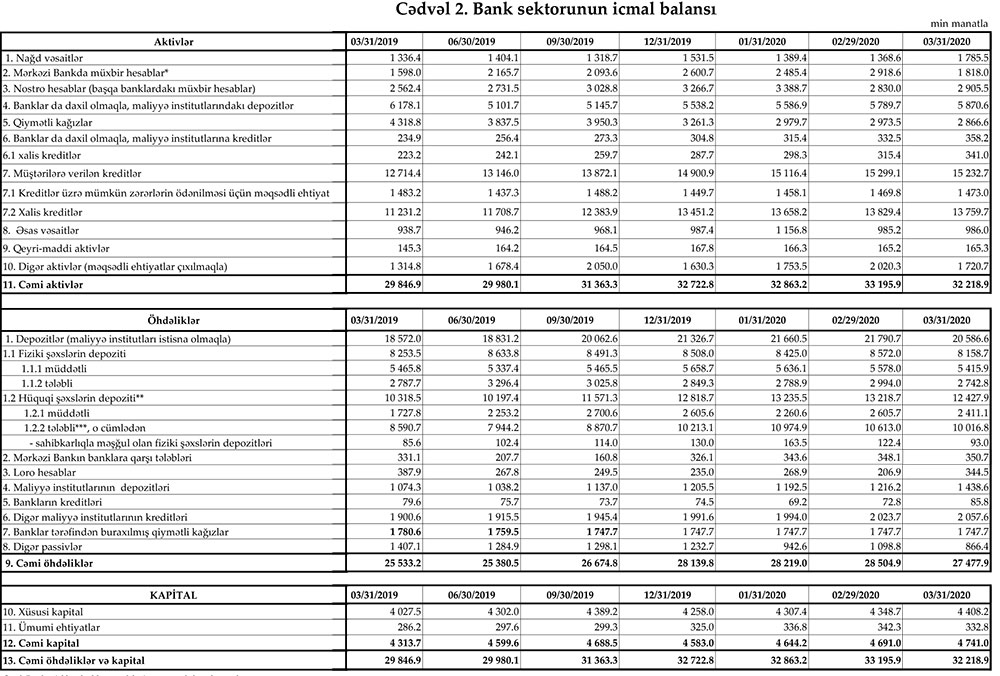 Mərkəzi Bank 31 mart 2020-ci il tarixinə olan bank sektorunun əsas göstəricilərini açıqlayıb.