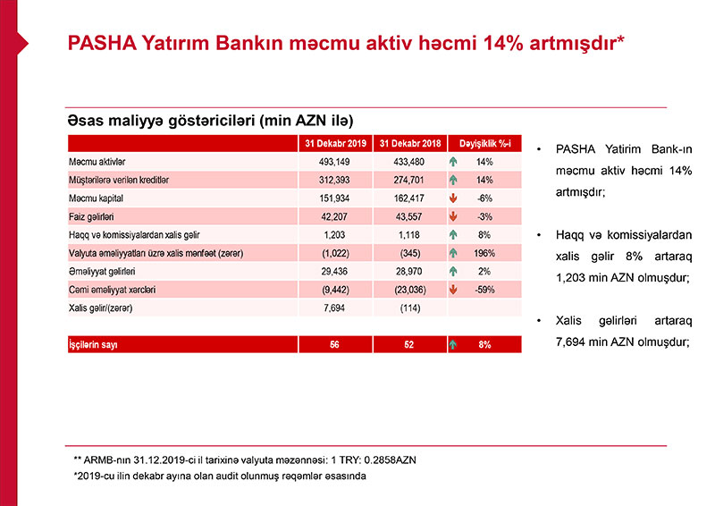 Bu gün keçirilən veb-konfransda PAŞA Bankın İdarə Heyətinin sədri Taleh Kazımov və İdarə Heyətinin üzvü, Baş Maliyyə inzibatçısı Bəhruz Nağıyev maliyyə göstəricilərini açıqlayıblar.