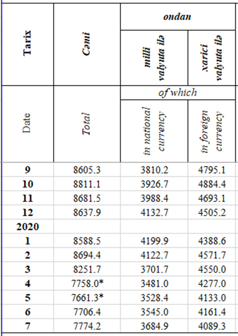 Xarici valyutadakı əmanətlərin xüsusi çəkisinin azalmasının səbəbi bu əmanətlərdə davam edən geriləmədir. Xarici valyutadakı əmanətlərdə azalma İyulda 72,1 milyon manat, cari ilin 7 ayı ərzində isə 416 milyon manat təşkil edib. Eyni zamanda, İyulda milli valyutadakı əmanətlər 67.8 milyon manat artıb, 7 ayda isə 863.7 milyon manat azalıb.