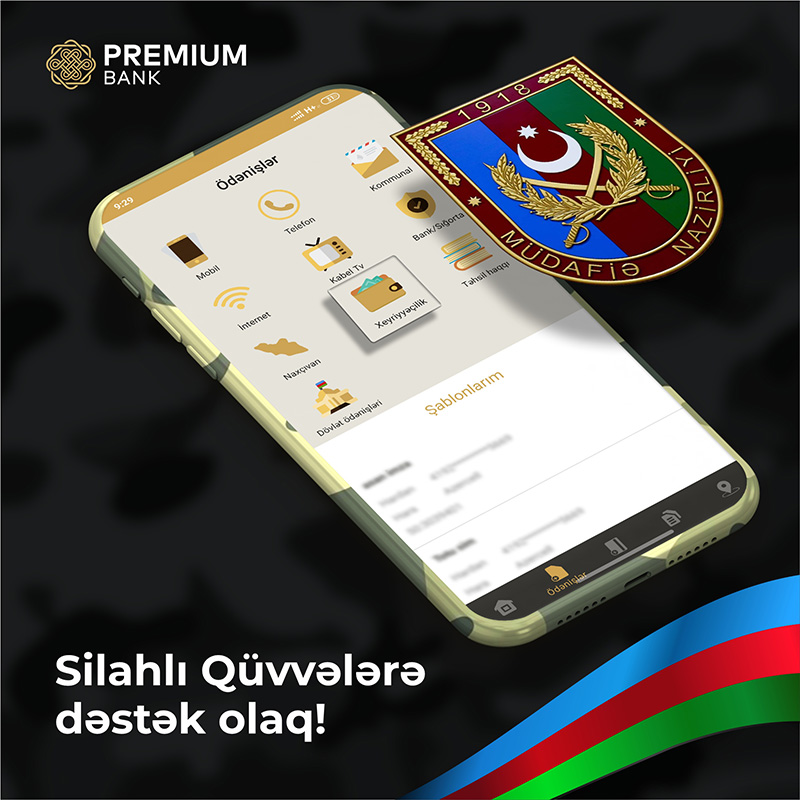 Premium Bank “Mobil Bank” əlavəsi ilə - SİLAHLI QÜVVƏLƏRƏ DƏSTƏK OLAQ !