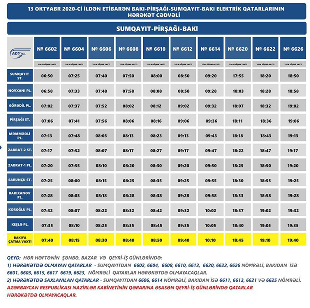 "Azərbaycan Dəmir Yolları" QSC sərnişin sıxlığını və sərnişinlərin müraciətlərini nəzərə alaraq sabahdan Bakı-Pirşağı-Sumqayıt-Bakı elektrik qatarlarının hərəkət cədvəlində dəyişiklik edəcək.