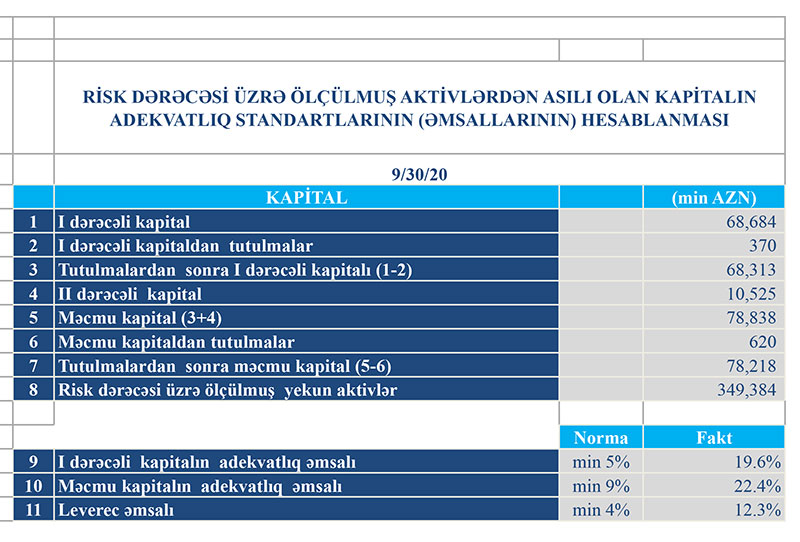 30 Sentyabr 2020-ci il tarixində Turanbank 78 milyon 218 min manat məcmu kapitala malik olub. Ötən ilin sonunda Bankın məcmu kapitalı 76 milyon 821 min manat təşkil etmişdi.