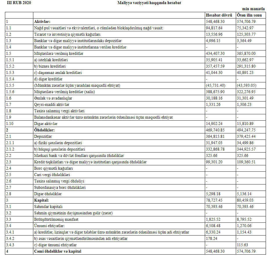 “AFB Bank” ASC 2020-ci ilin 9 ayını 1 milyon 775 min manat xalis mənfəət ilə başa vurub.
