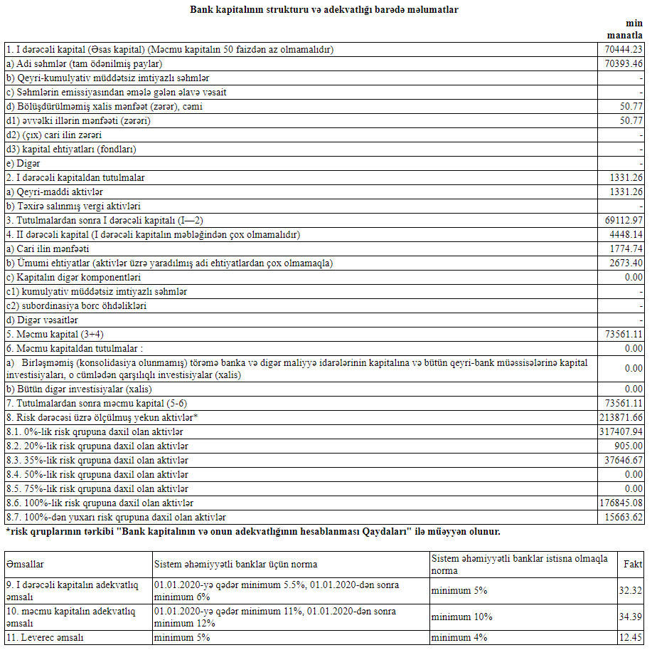 Xalis mənfəətin 2,5 dəfə azalması Bankın qeyri-faiz gəlirlərinin azalması ilə bərabər mümkün zərərlər üçün yaradılan məqsədli ehtiyatlara ayırmanın artması ilə əlaqədardır.