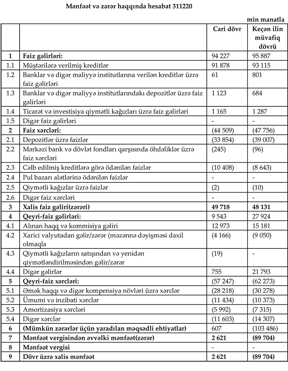 Xatırladaq ki, 2019-cu ildə “AccessBank” mümkün zərərlər üçün yaradılan məqsədli ehtiyatlara 89 milyon704 min manat ayırdığı üçün həmin ili zərər ilə bağlamışdı.