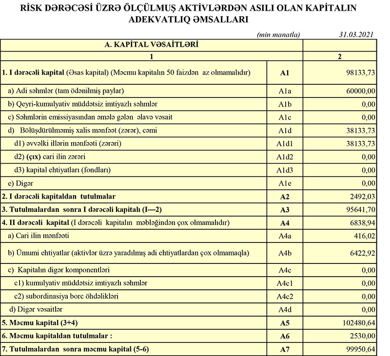 Müqayisə üçün qeyd edək ki, 2020-ci ilin yanvar-mart dövründə "Azərbaycan Sənaye Bankı"nın cəmi əməliyyat gəlirlləri 9 milyon 240 min manat, cəmi əməliyyat xərcləri 7 milyon 228 min manat, əməliyyat mənfəəti 2 milyon 12 min manat təşkil etmişdi. Eyni zamanda ehtiyatdan azad olmuş 817 min manat mənfəətə əlavə edilmişdi.
